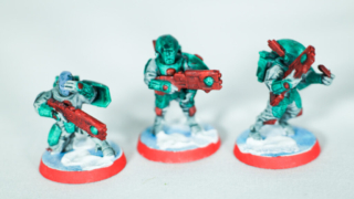 Drew has been into miniature wargaming for over 30 years, he is an experienced Warhammer 40k tournament player, but that doesn’t keep him away from the MCP and Shatterpoint tables. Of the team he is generally that comes up with the color profile and he is great at shading, contrast work, and highlighting.